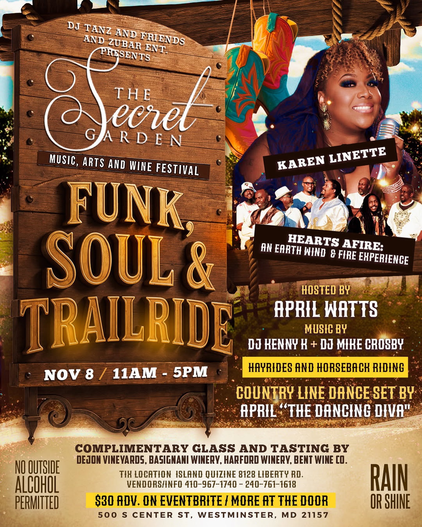 The Secret Garden Wine Festivals are held by an external vendors. Hours of operation and admission at the discretion of the event organizer.
